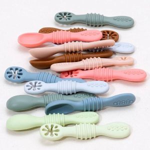 قاشق سیلیکونی با دسته بلند برای دستهای والدین طراحی میشود.این قاشق مناسب سن 4 ماهگی به بالا است. در این سن پدر و مادر ممکن است به کودک پوره یا آب جوشیده خنک بدهند. سری سیلیکونی این مدل قاشق فوقالعاده نرم و منعطف است. برندهای معتبر با طراحی ارگونومیک محصولی کاملا مناسب با فضای دهان کودک تولید میکنند.