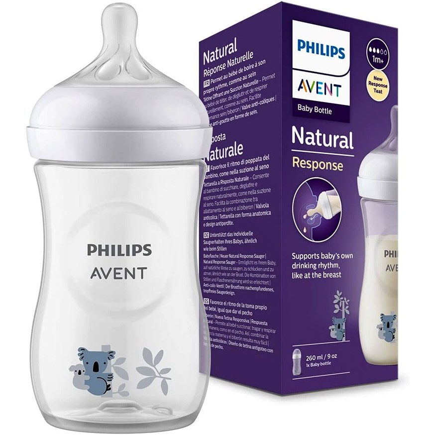 شیشه شیر 260 میل طرحدار اونت Avent یک طرح بسیار زیبا برای کودکان پسر و دختر وارد بازار کرده است. طراحی زیبای این محصول علاوه بر ویژگی ها و کیفیت آن را برای استفاده مادران و نوزادان جذاب خواهد کرد. بدنه این محصول طلقی نشکن می باشد. این محصول دارای جریان متوسط 2 قطره می باشد که برای کودکان بالای 1 ماه مناسب می باشد. سر شیشه این محصول از سری سر شیشه هایی می باشند که اکثر نوزادان به دلیل مشاه بودن با سینه مادر قبول می کنند.