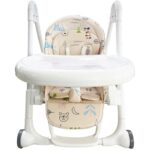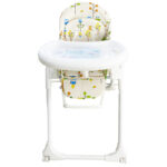 صندلی غذا بچه جنس فلزی و مستحکمی دارد. ویژگی خوب این صندلی قابلیت جمع شدن آن است که موجب می شود، فضای کمی را اشغال کند. صندلی غذای کودک دارای 2 عدد چرخ در جلو است تا راحت تر بتوان آن را تکان داد.