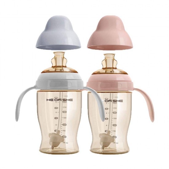 لیوان آبمیوه خوری 280 میل هی اور شی HEORSHE دارای سرشیشه کاملا ضد نفخ میباشد که از دلدرد و نفخ کودک جلوگیری میکند. بدنه آن فاقد هرگونه مواد مضر بوده و میتوان آنرا برای گرم کردن مایعات داخل مایکروفر قرار داد. حجم این لیوان 280 میل بوده و سری آن برای کودکان بالای نه ماه طراحی شده است. دستههای مخصوص درنظر گرفته شده برای این لیوان ویژه بوده تا کودک به راحتی بتوان آنرا در دست بگیرد. البته این دستهها قابل جدا شدن هستند تا بتوان بصورت مستقل از این لیوان آبمیوهخوری کودک استفاده کرد.