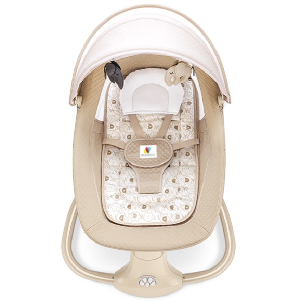دکمه های زیر گهواره برقی ماستلا mastella توسط یک کنترل کوچکی که در داخل جعبه محصول می باشد از راه دور کنترل می شود. 15 موزیک مخصوص نوزادان نیز به عنوان موزیک های اولیه قابلیت پخش دارد که بصدای پخش نیز به راحتی کم و زیاد می شود. آویز های عروسکی پولیشی محصول در سنین نوزادی توجه کودک را به خود جلب کرده و استفاده از این محصثول را بسیار ساده و آسان می کند. برای ایمنی نوزاد شما یک کمربند ایمنی برای استفاده کودکان تا یکسالی در نظر گرفته شده است. ابعاد این محصول نیز 20*30*60 سانتی متر می باشد که برای استفاده به عنوان صندلی برای کودکان تا 3 سالگی کاملا مناسب می باشد. تایمر این دستگاه 15/30/45 دقیقه می باشد. کارکرد این گهواره با برق و باطری می باشد. لوازم جانبی این دستگاه پشه بند و تشک های نرم و کنترل از راه دور آن می باشد.