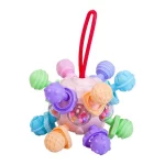 این اسباب بازی به شکل یک توپ با دستههای رنگی طراحی شده است. طراحی آن به گونهای است که نوزادان میتوانند به راحتی آن را در دستان خود بگیرند و با جویدن و گاز گرفتن آن، خارش و درد لثههای خود را تسکین دهند. این ویژگی به خصوص در زمان دندان درآوردن، برای نوزادان بسیار مفید است و میتواند به آنها آرامش بخشد.