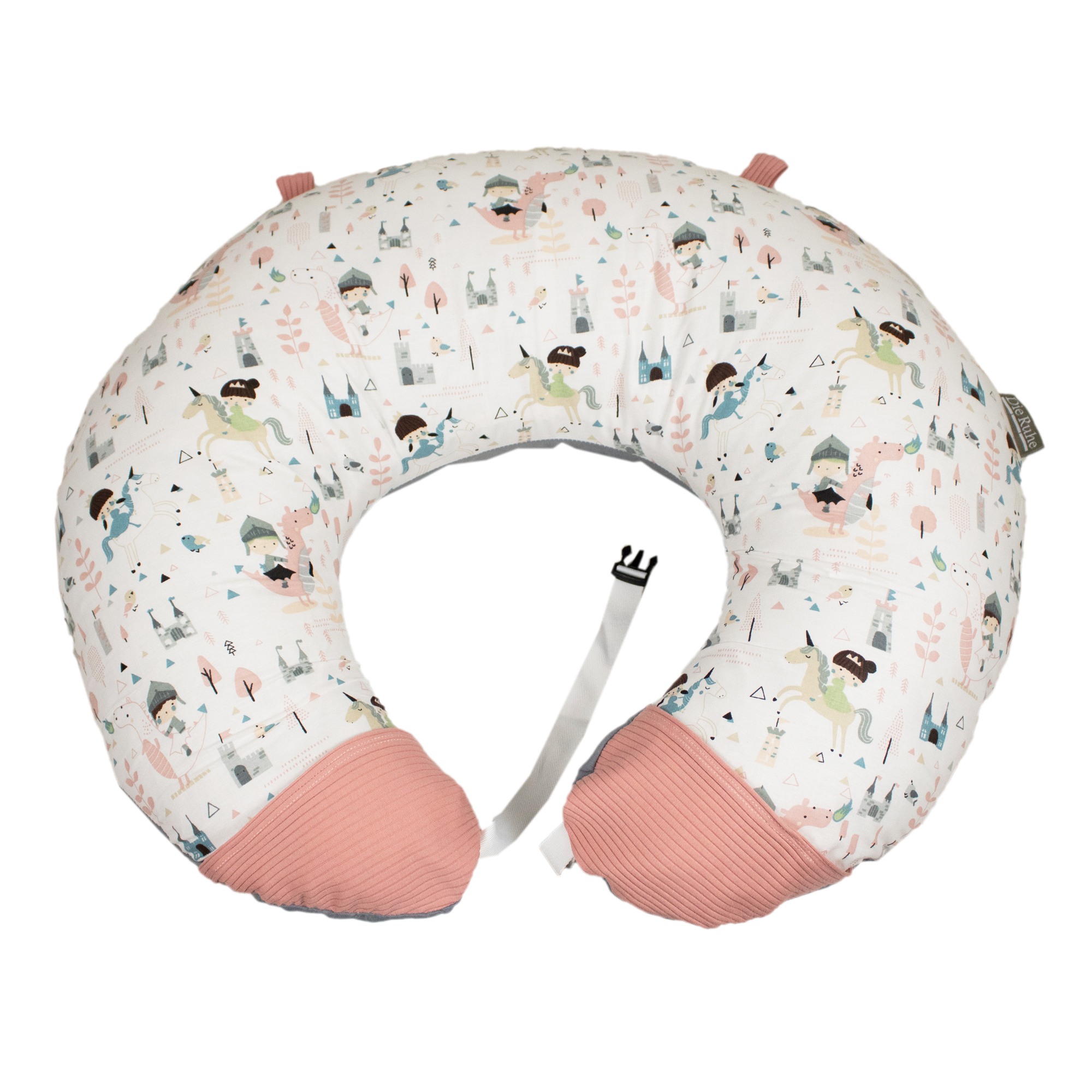 تامی پیلو طرح اژدها سوار دی روحه Die Ruhe یک بالش چند منظوره است. این بالش به عنوان بالش شیردهی به راحتی با بند به کمر مادر بسته می شود و مادر و نوزاد را در وضعیت ارگونومیک قرار می دهد تا شیر دادن را راحت تر کند و از کمردرد و آسیب های گردن و شانه جلوگیری کند. هم چنین در این حالت می توانید از جیب های این بالش برای قرار دادن پد شیردهی یا وسایل دیگر استفاده کنید.