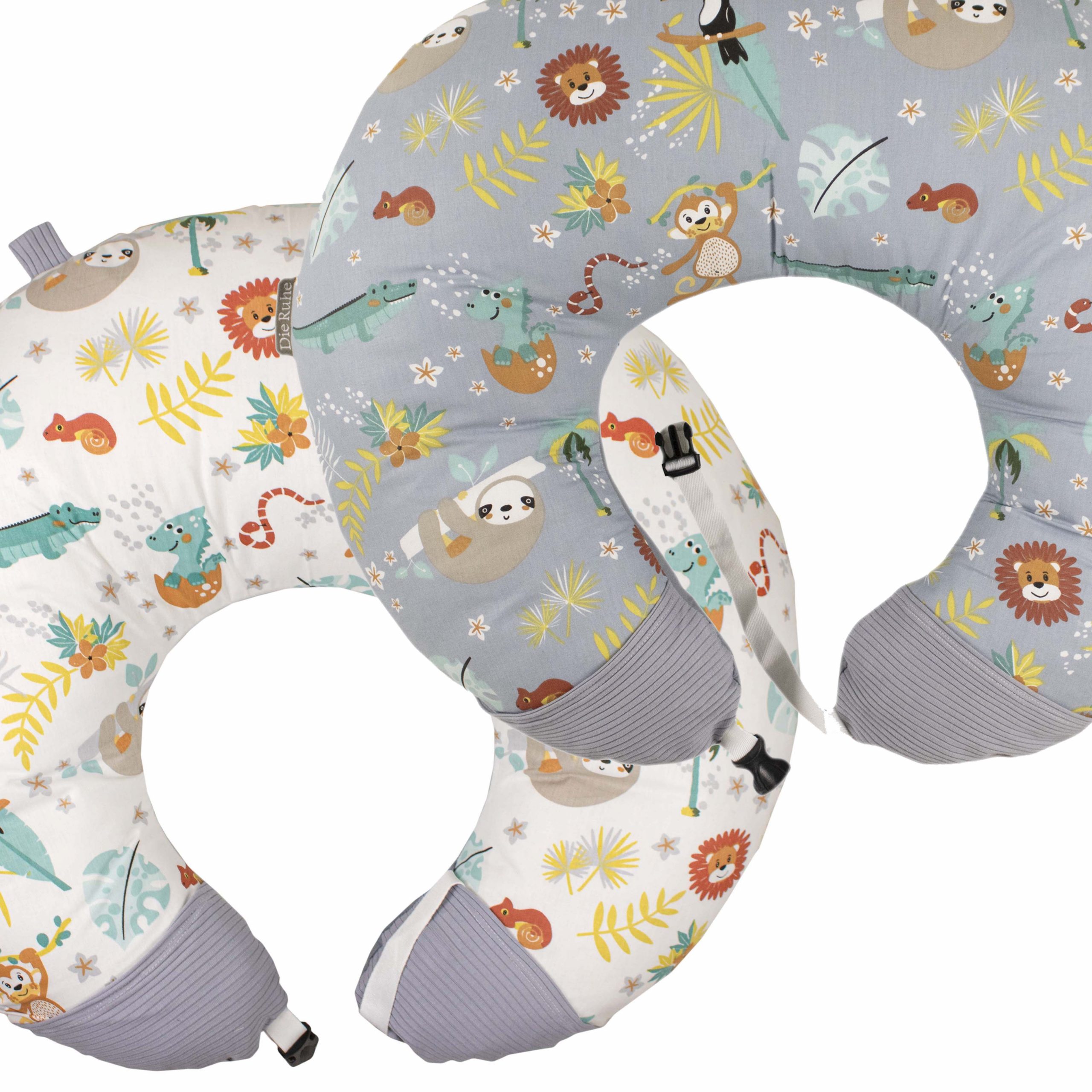 تامی پیلو طرح جنگل دی روحه Die Ruhe یک بالش چند منظوره است. این بالش به عنوان بالش شیردهی به راحتی با بند به کمر مادر بسته می شود و مادر و نوزاد را در وضعیت ارگونومیک قرار می دهد تا شیر دادن را راحت تر کند و از کمردرد و آسیب های گردن و شانه جلوگیری کند. هم چنین در این حالت می توانید از جیب های این بالش برای قرار دادن پد شیردهی یا وسایل دیگر استفاده کنید.