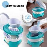 این لذتها برای کودکان زمانی دوچندان میشود که دکمه کنار این توالت را بزنید تا موزیک زیبایی برای کودک پخش شود. چراغهای روی دسته میتواند مدتی که کودکتان روی آن نشسته او را سرگرم کند. جنس پلاستیک مرغوب با لبههای گرد و رنگارنگ دیگر مشخصههای این توالت است.