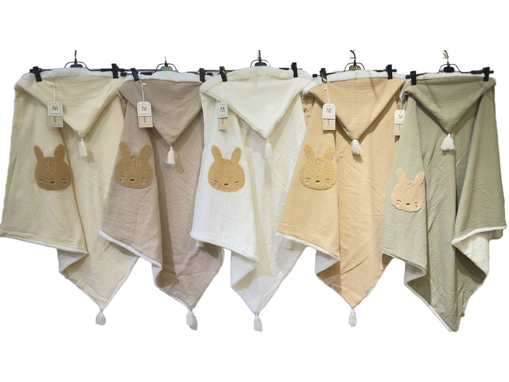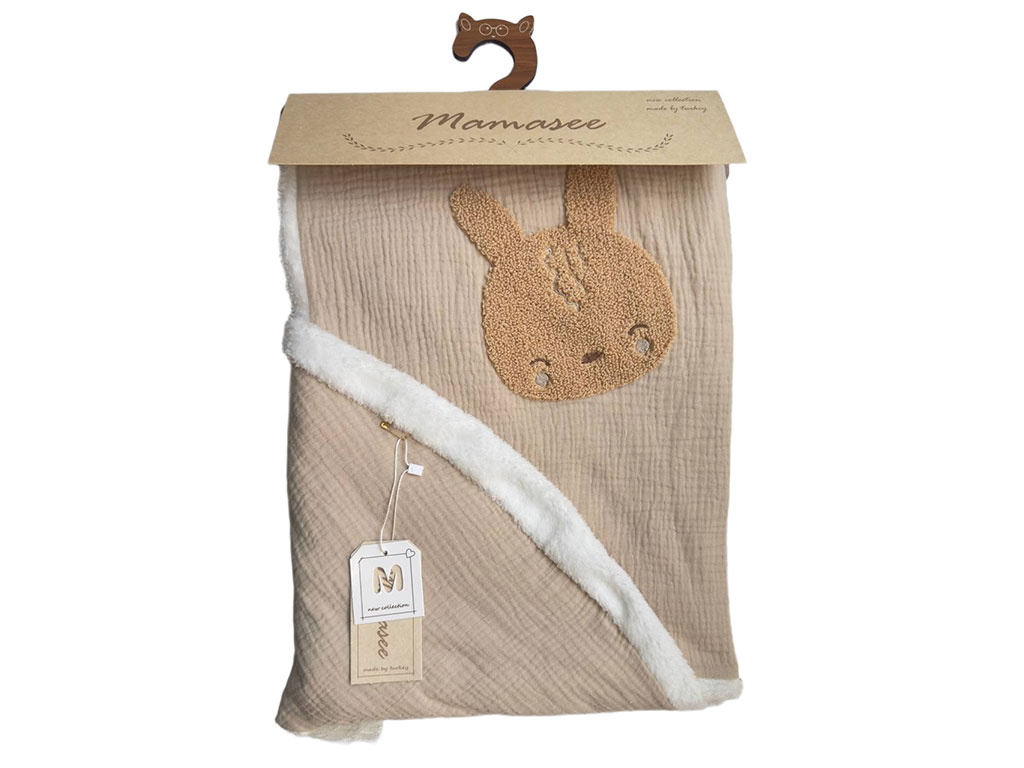 ویژگیهای پتو دورپیچ موسلین کلاه دار نوازادی طرح خرگوش ماماسی Mama See