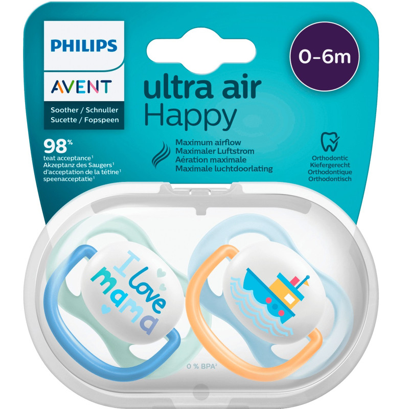 مشخصات فنی و ویژگی های پستانک ارتودنسی اولترا ایر0-6 ماه طرح آی لاو ماما اونت Avent